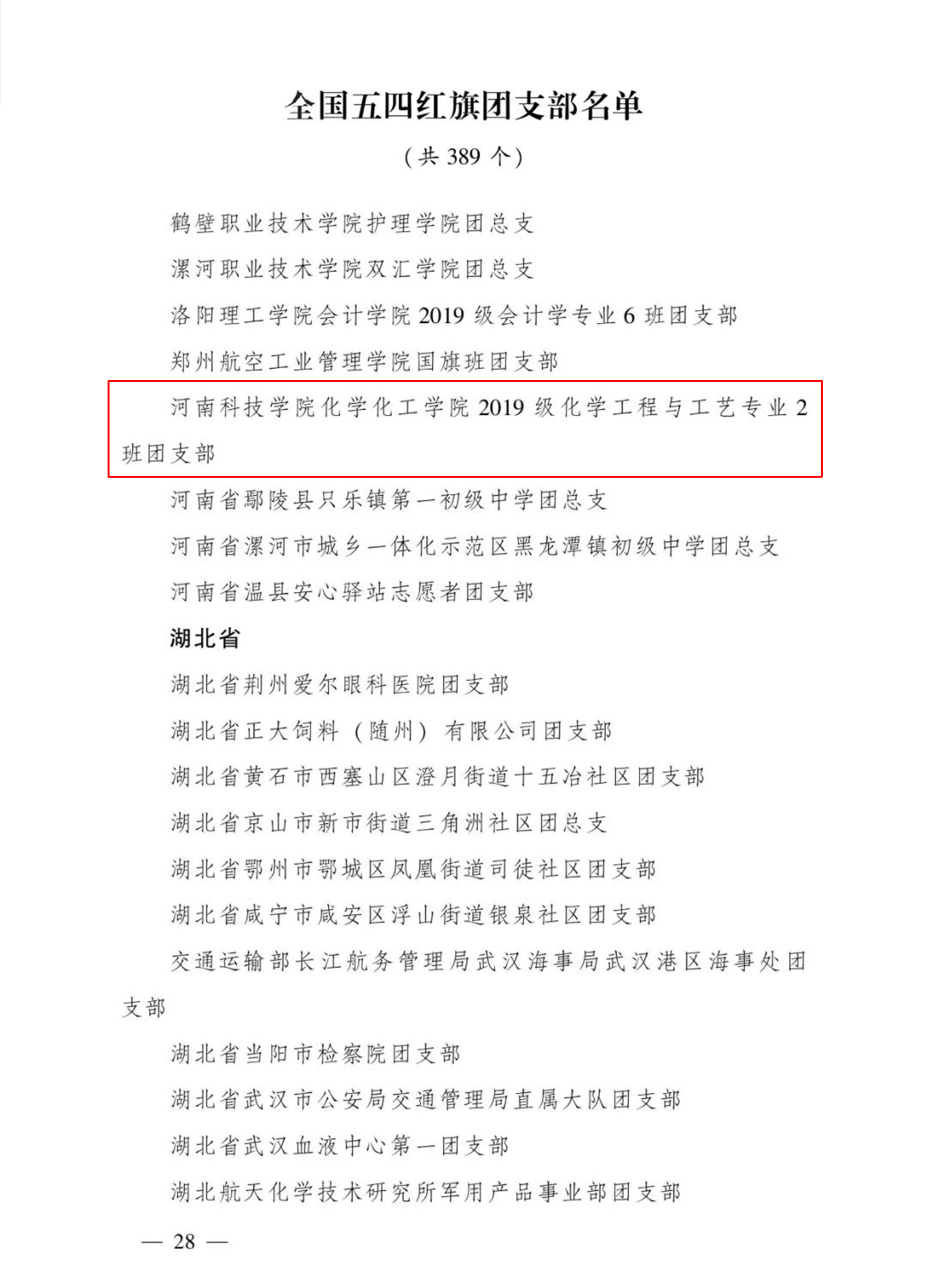 近日,共青团中央对全国五四红旗团组织和优秀共青团员、共青团干部进行了表彰。我校化学化工学院2019级化学工程与工艺专业2班团支部被授予“全国五四红旗团支部”荣誉称号。