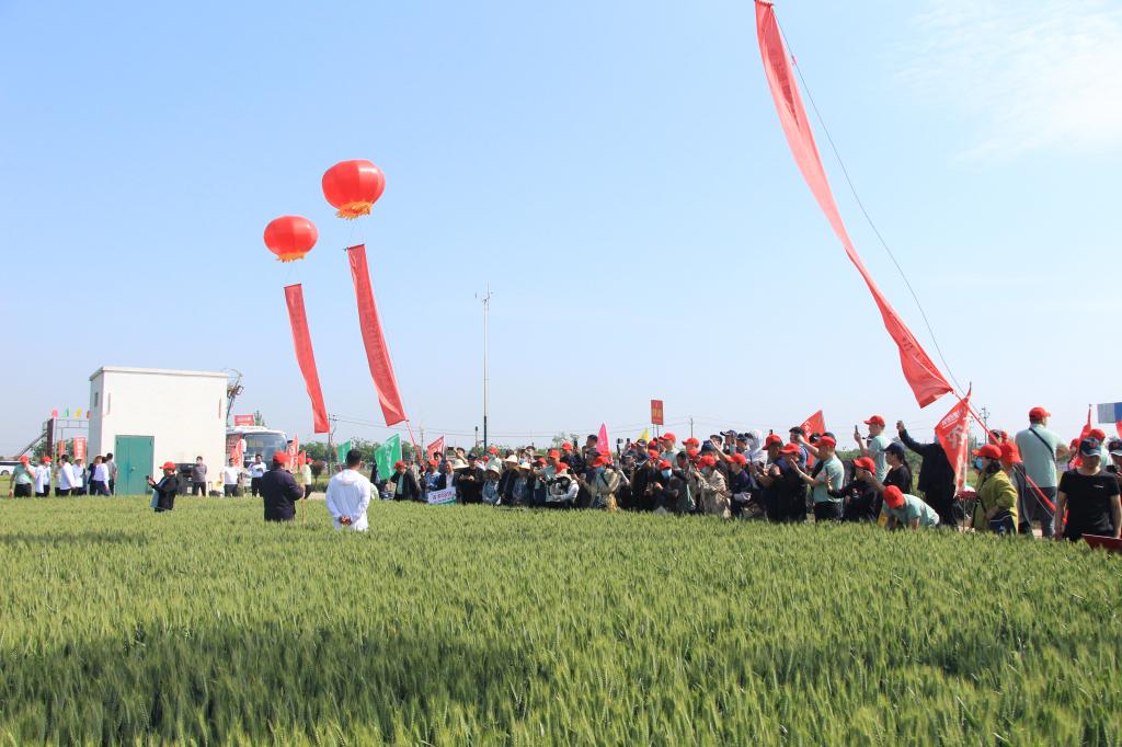 5月8日上午,我校举办的百农4199及百农5819高光效小麦品种观摩研讨会在国家现代农业科技示范展示基地召开。我校副校长贾积身、副校长胡铁柱出席观摩研讨会。河南省种业发展中心副主任周继泽研究员、品种试验科科长刘桂珍高级农艺师、品种审定科副科长张文玲研究员,河南农业大学崔党群教授,南阳市种子服务站站长赵群友研究员,新乡市种子服务站站长李璐研究员,来自中种集团、安徽麦源种业、河南滑丰种业、河南联丰种业、河南金蕾种苗等企业代表,以及我校成果转化与合作办公室、农学院、小麦中心负责人和团队成员等180余人参加观摩研讨会。