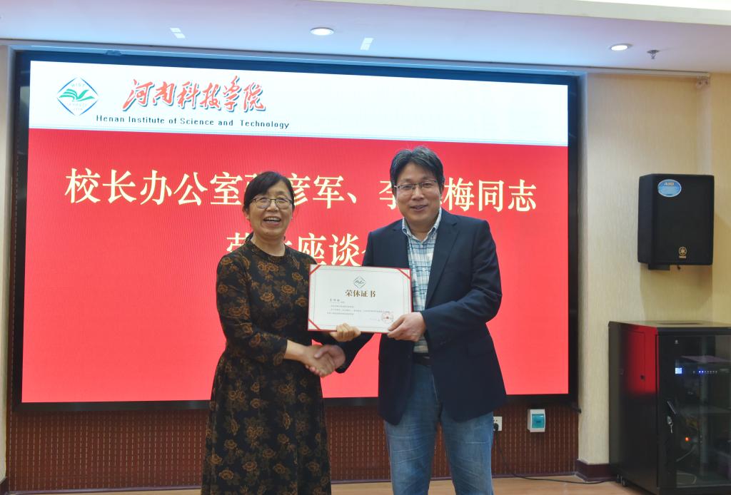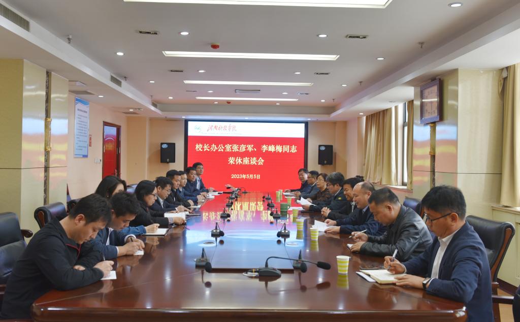 5月5日下午,校长办公室全体人员在行政楼901会议室举行张彦军、李峰梅老师荣休座谈会。校长阚云超出席座谈会。