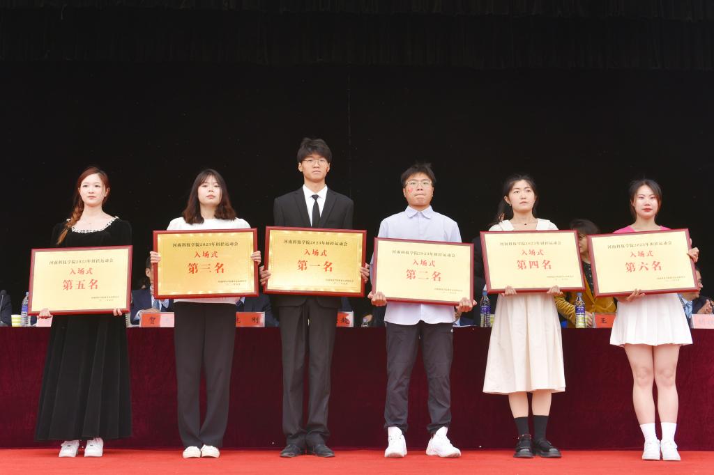 校体委副主任、副校长王霞宣布入场式学生队列表演获奖单位名单。与会校领导为获奖单位颁奖。入场式学生队列表演前六名分别是:园艺园林学院、教育科学学院、音乐与舞蹈学院、信息工程学院、经济与管理学院、服装学院。