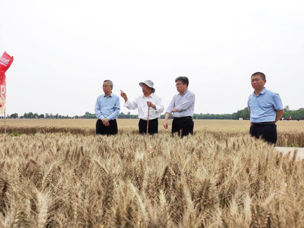 按照学习贯彻习近平新时代中国特色社会主义思想主题教育“学思想、强党性、重实践、建新功”的总要求,切实以主题教育成效推进工作,5月31日下午,校领导宋亚伟、阚云超、胡铁柱一行,调研我校国家现代农业科技示范展示基地(新乡县小麦千亩示范基地),慰问、看望全国人大代表茹振钢教授,深入了解科研育种材料和新品种繁育示范田麦收进展情况。