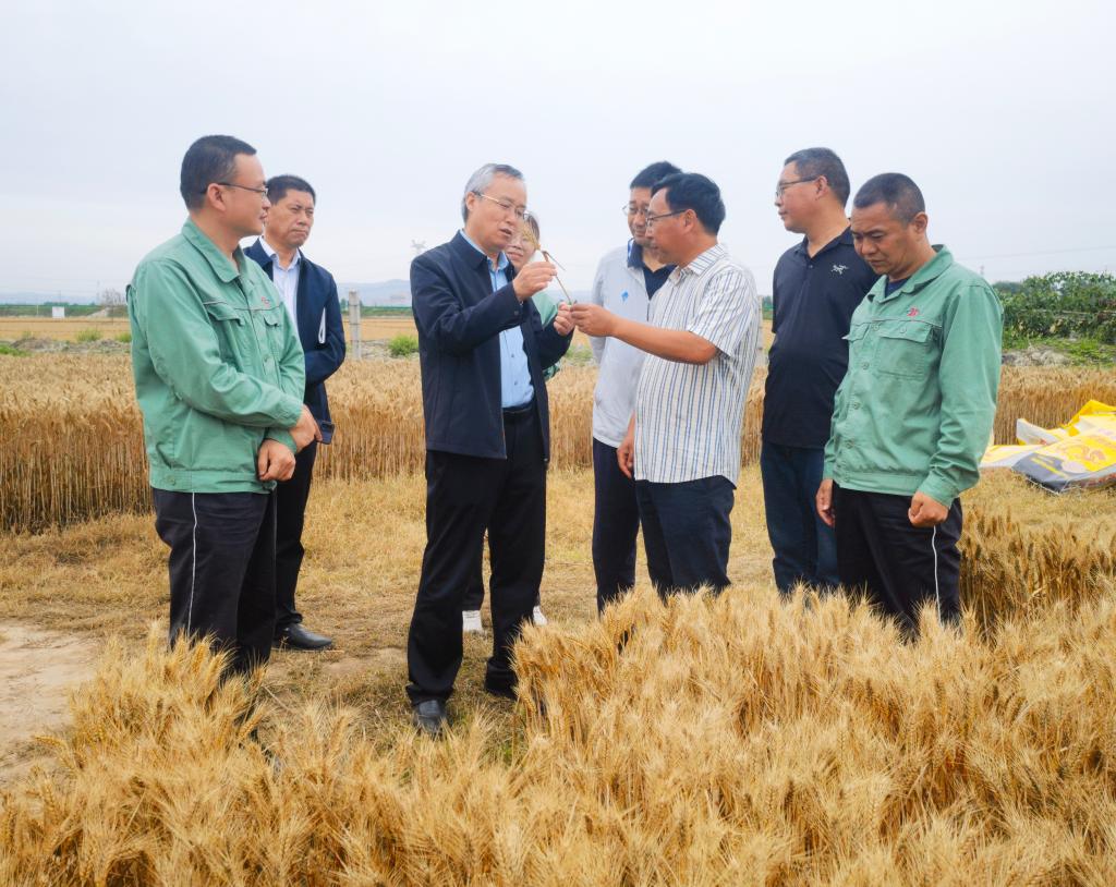 在实地调研中,宋亚伟认真听取了团队负责人欧行奇教授汇报,实地察看了团队培育的国家“十三五”代表性重大品种百农207、河南省主导品种百农307、2023年国审品种百农607和新培育成功的优质专用品种百农627、超高产新品系23-74等小麦良种生长情况,对育种中存在的问题进行了深入交流。