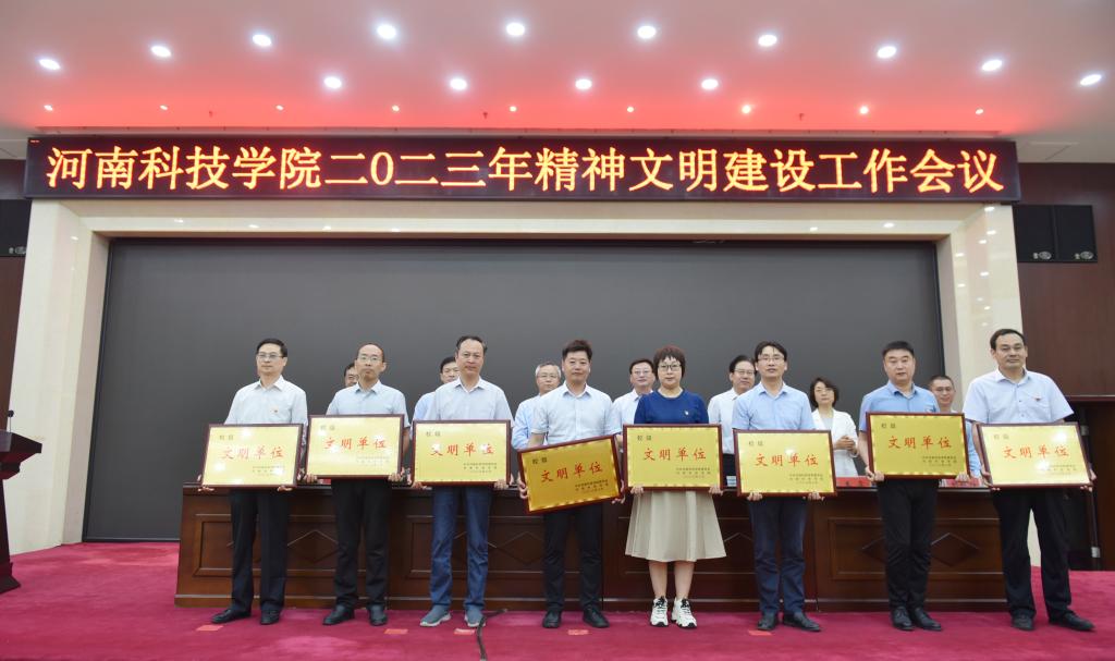 校党委副书记何松林宣读了《中共河南科技学院委员会 河南科技学院关于表彰2022年精神文明建设先进集体和先进个人的决定》。