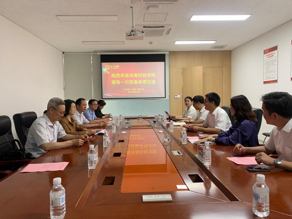 王霞向正大集团(河南区)下辖的三家企业负责人介绍了近年来河南科技学院的发展变化,特别是动物科技学院的相关专业近年来在学科特色、教师团队、科学研究、毕业生就业等方面取得的成效。她希望校企双方继续加大资源共享力度,积极探索畜牧兽医相关专业在培养复合型人才过程中的途径和方式,推动企业发展和高校教学科研工作的深度融合,综合发力共同推动高校人才培养质量的提高,最大限度的促进大学生就业。