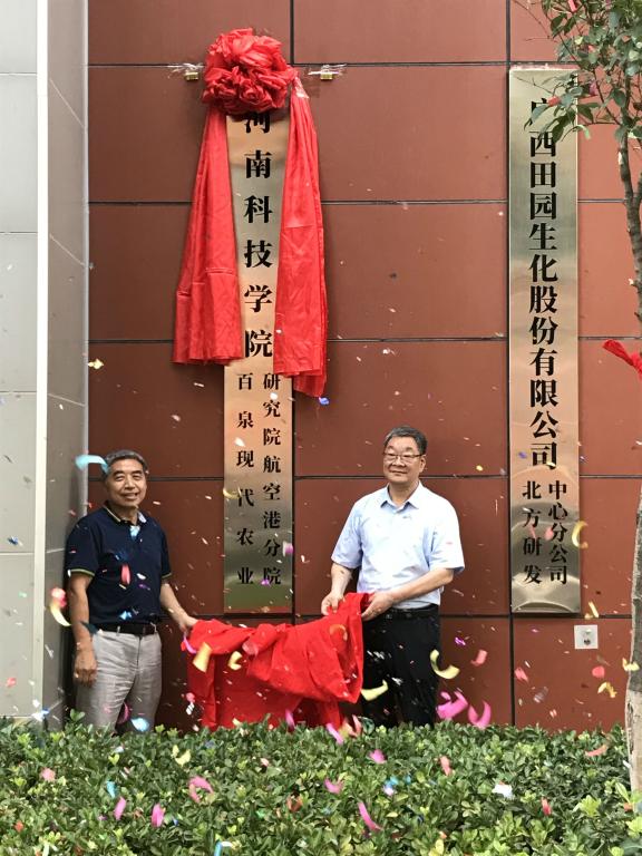 6月19日,河南科技学院百泉现代农业研究院郑州航空港分院成立仪式在郑州航空港举行。我校副校长贾积身,农业农村部学术委员会委员、农业农村部“农药研制与施用技术”重点实验室主任、百泉现代农业研究院院长李卫国教授共同为郑州航空港分院揭牌,广西田园股份有限公司北方农药板块负责人吴智红,河南金田地农化有限责任公司总经理王佳,以及我校科技处负责人和百泉现代农业研究院相关人员出席仪式。