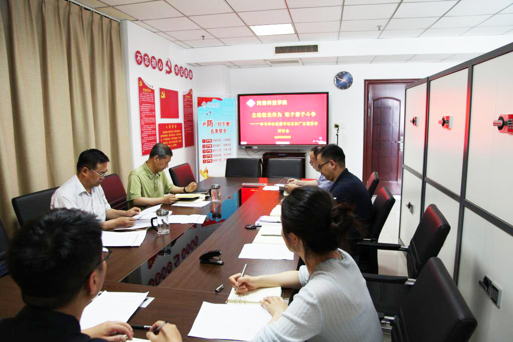6月26日下午,纪委监察专员办公室在行政楼711会议室组织全体工作人员学习华北水利水电大学纪委书记王如厂同志题为《主动担当作为、敢于善于斗争,以纪检监察工作高质量推动学校事业高质量发展》的专题报告并开展研讨。校纪委书记、监察专员贺杰参加本次研讨会。