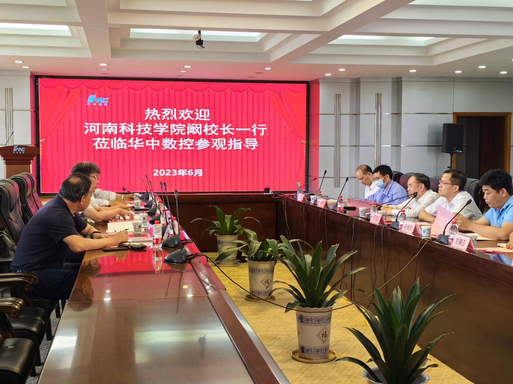 6月28日,我校与武汉华中数控股份有限公司战略合作协议签订仪式在湖北武汉举行。原教育部部长、中国工程院院长周济院士,武汉华中数控股份有限公司总裁田茂胜、副总裁(华数学院副院长)蒋荣良、总裁助理(教育事业部总经理)周理、华数学院副院长(培训部部长)孙海亮,教育事业部副总经理刘署亚、王小军,片区经理杨建云,以及我校校长阚云超、副校长胡铁柱和科技处、机电学院负责人及相关人员等出席了签约仪式。