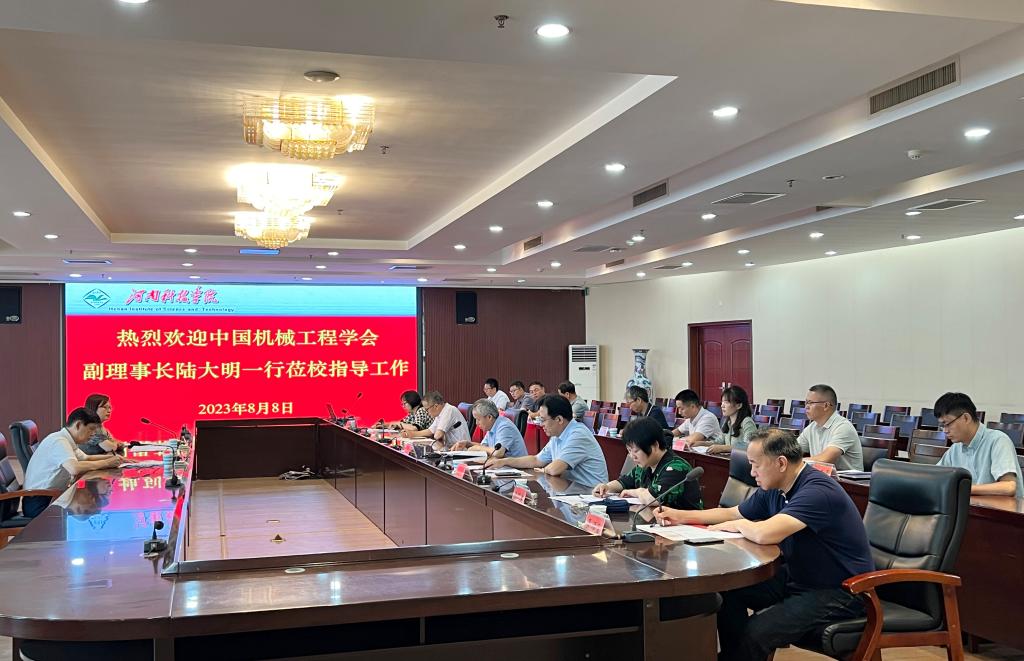 8月8日上午,中国机械工程学会副理事长兼秘书长陆大明莅临我校指导工作,主要针对我校机械工程专业建设工作进行了指导。校党委书记宋亚伟、副校长冯启高出席会议,教务处、教学质量监控中心、机电学院负责人及教师代表等相关人员参加会议。会议由冯启高主持。