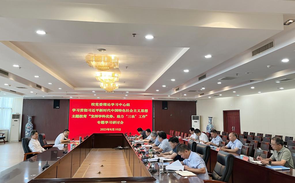 8月10日上午,校党委理论学习中心组在行政楼206会议室召开学习贯彻习近平新时代中国特色社会主义思想主题教育“发挥学科优势,助力‘三农’工作”专题学习研讨会。省委第二十三巡回指导组成员到会指导。会议由校党委书记宋亚伟主持。