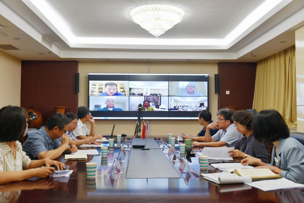 8月15日上午,我校与美国克莱顿州立大学线上交流会在行政楼1111会议室召开。美国克莱顿州立大学校长Dr. Georj Lewis,副校长及教务长Dr. Kimberly McLoed、信息及计算科学院院长Dr. Ebrahim Khosravi、计算机科学系主任Dr. Bai Shuju出席会议。我校校长阚云超和副校长王霞出席交流会,财务处、教务处、国际交流与合作处、计算机科学与技术学院和国际教育学院相关负责人参加会议。会议由王霞主持。