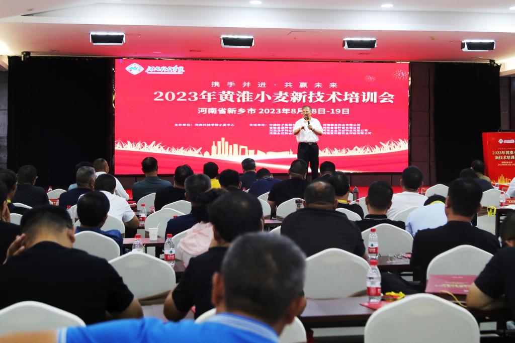 近日,由我校小麦中心发起,中国种子集团有限公司、安徽麦源种业科技有限公司、河南滑丰种业科技有限公司、河南永优种业科技有限公司、河南联丰种业有限公司、河南金蕾种苗有限公司、河南聚科园农业科技有限公司等企业联合举办的“2023年黄淮小麦技术培训会”在新乡德润会议中心举行。校领导宋亚伟、阚云超、胡铁柱,省农业厅科教处处长张广建,校科技处、成果转化与合作办公室、实验室与设备管理处、农学院、小麦中心相关负责人,以及种粮大户、各种子企业代表、农业技术人员等200余人参加了会议。