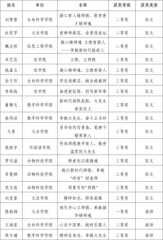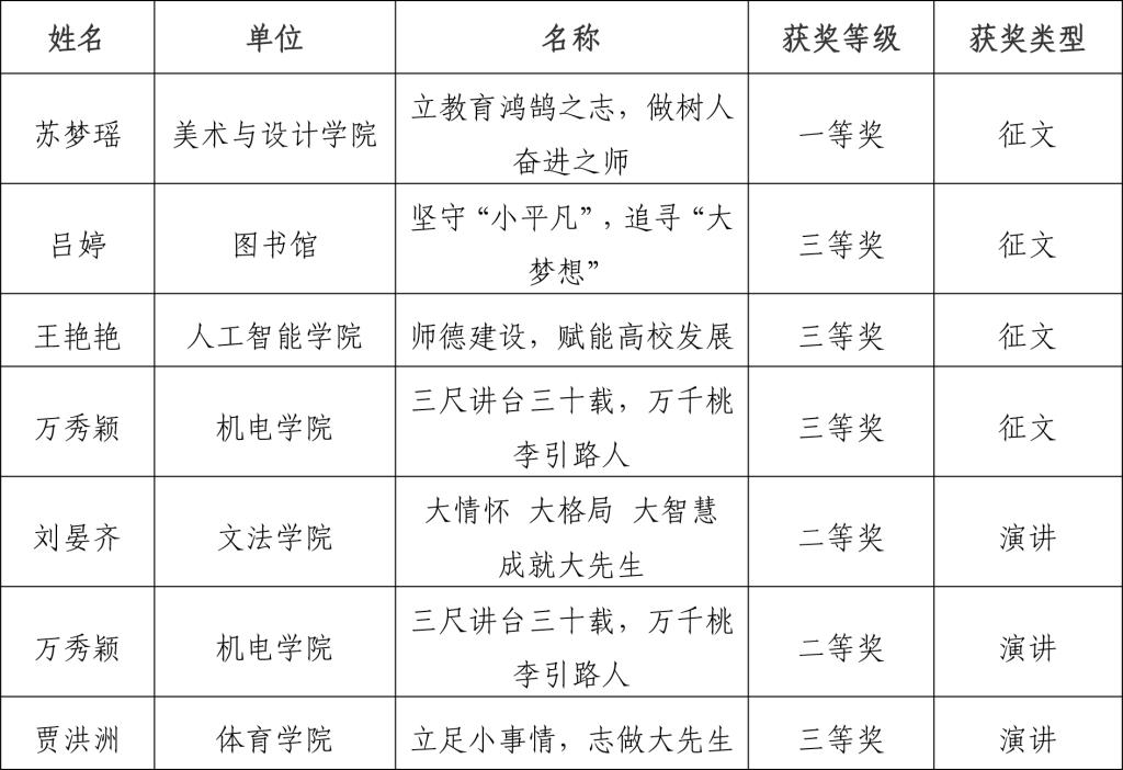河南省“奋进新征程,志做大先生”师德主题教育活动中获奖名单