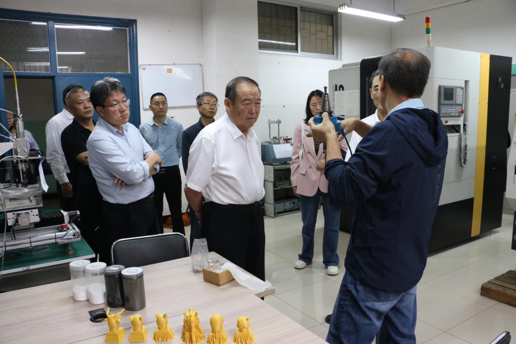 张铁岗、蒋剑春一行先后参观调研了我校机电学院先进切削实验室、先进材料制备与表面强化实验室。调研过程中,实验室负责人汇报了实验室现状、发展规划,展示了学生所做的设计产品。