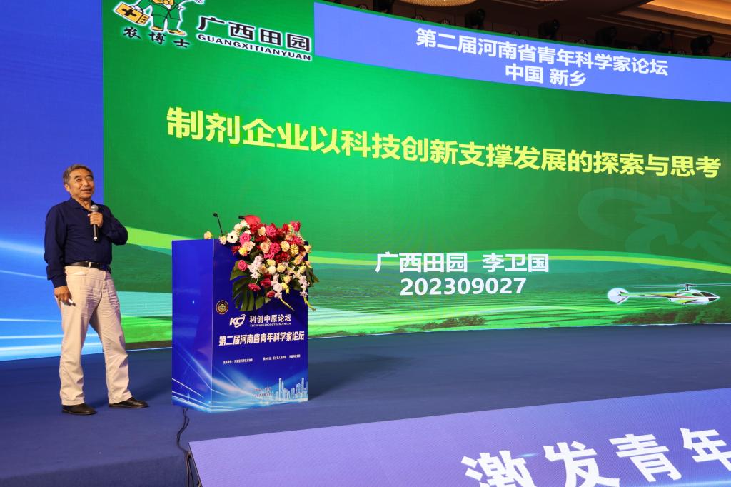 国家“万人计划”领军人才、百泉现代农业研究院院长李卫国以《高工效植保领域的创新思考和探索》为题,介绍了广西田园公司近年来在农业科技领域开展的创新探索和成果。作为一家以农药制剂的研发制造和推广为主营业务高新技术企业,公司近年来针对中国经济进入刘易斯拐点后劳动力成本持续上升的趋势,着力通过种肥药械产业技术的交叉融合,在以省力化为主要特征的高工效农药和高工效植保领域探索创新,并同时与贵州大学宋宝安院士等国内一流的科研团队在创制新农药领域协同创新,取得了一系列成果,支撑了企业持续高质量成长,助力了中国农业的保产增收。