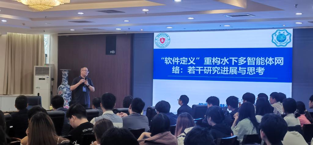 河海大学博士生导师韩光洁教授在行政楼206报告厅作题为《“软件定义”重构水下多智能体网络:若干研究进展与思考》的学术报告。韩光洁教授在报告中首先阐述了基于“软件定义网络”技术重构水下多智能体网络的基础架构。其次,结合其实验室团队在该方向的研究成果,介绍如何利用软件定义网络技术,重构水下多智能体网络的数据路由架构、编队航行架构以及自主学习决策架构。最后,该报告重新审视与构建了水下多智能体系统的协同控制机制。