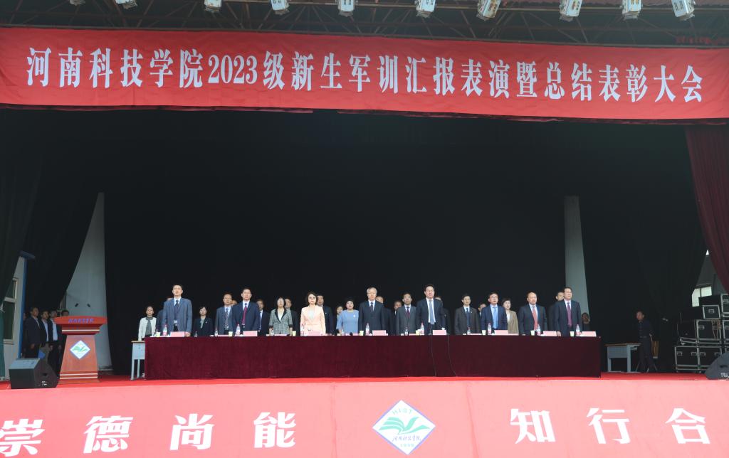 2023级新生军训汇报表演及总结表彰大会在高亢的校歌声中圆满落幕。