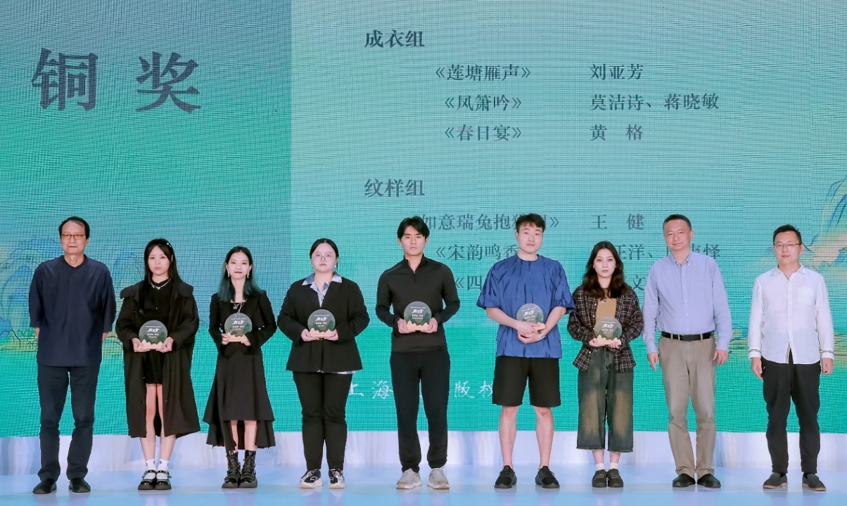 经过前期初审、复审、展示等环节的比拼,我校艺术硕士研究生刘亚芳的作品《莲塘雁声》荣获铜奖,奖金10000元;本科生杜玉鑫的作品《云起江山》和范梦浩的作品《红楼玉阙》荣获最佳设计奖,各获奖金5000元;艺术硕士研究生孔令欣的作品《山水之间》、张雯琦的作品《清·莲》和本科生苏蓓的作品《英戎》荣获优胜奖,各获奖金1000元。
