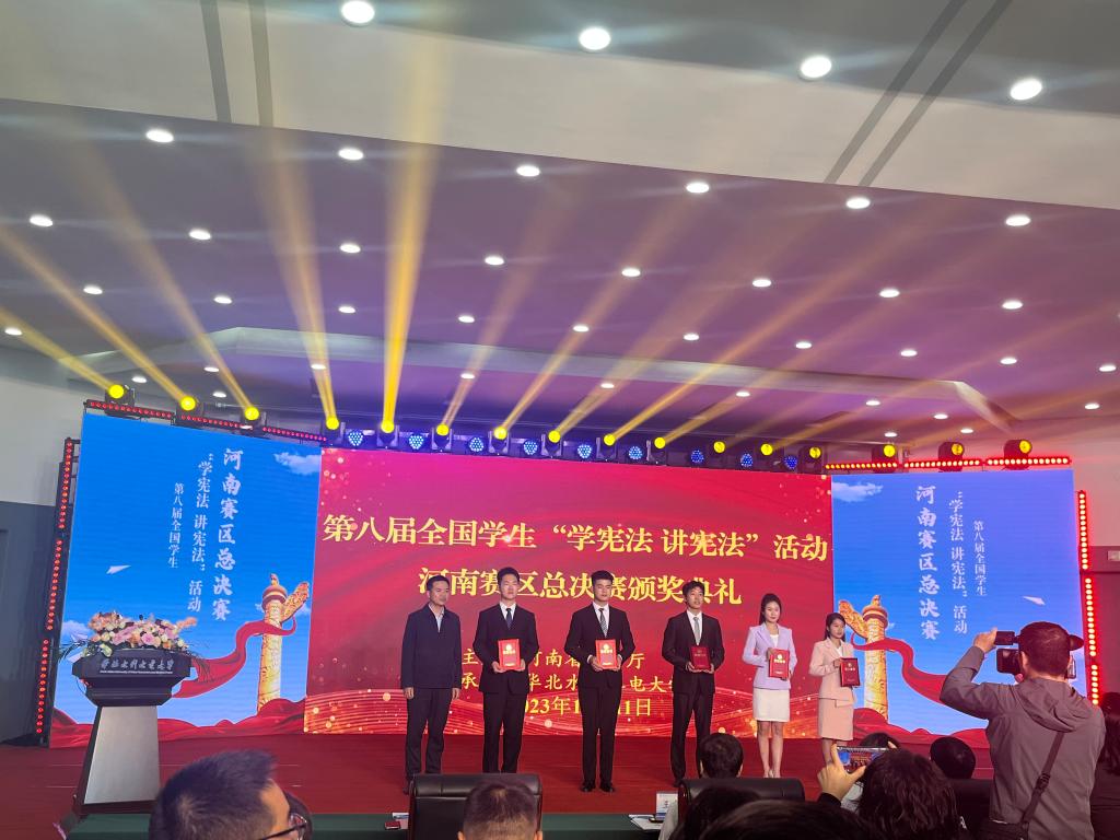 10月9日至11日,由河南省教育厅主办的第八届全国学生“学宪法 讲宪法”活动河南赛区总决赛在华北水利水电大学举行。省教育厅党组成员、副厅长朱自锋,政策法规处处长徐军保等出席活动,来自全省各地市教育局、省直管县市教育系统、部分高校的400余名师生代表参加此次活动。
