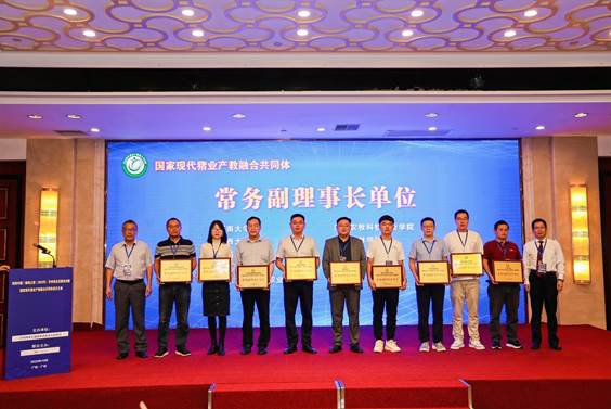 10月12日,由牧原食品股份有限公司、华中农业大学、重庆三峡职业学院、国家生猪技术创新中心、中国种猪信息网&《猪业科学》超级编辑部五家单位共同牵头发起成立的“国家现代猪业产教融合共同体”在广州正式成立。经过“国家现代猪业产教融合共同体”一届一次理事会的选举,我校当选为常务副理事长单位。我校动物科技学院动物科学系主任苗志国教授和动物医学系主任杨雪峰教授应邀参会。