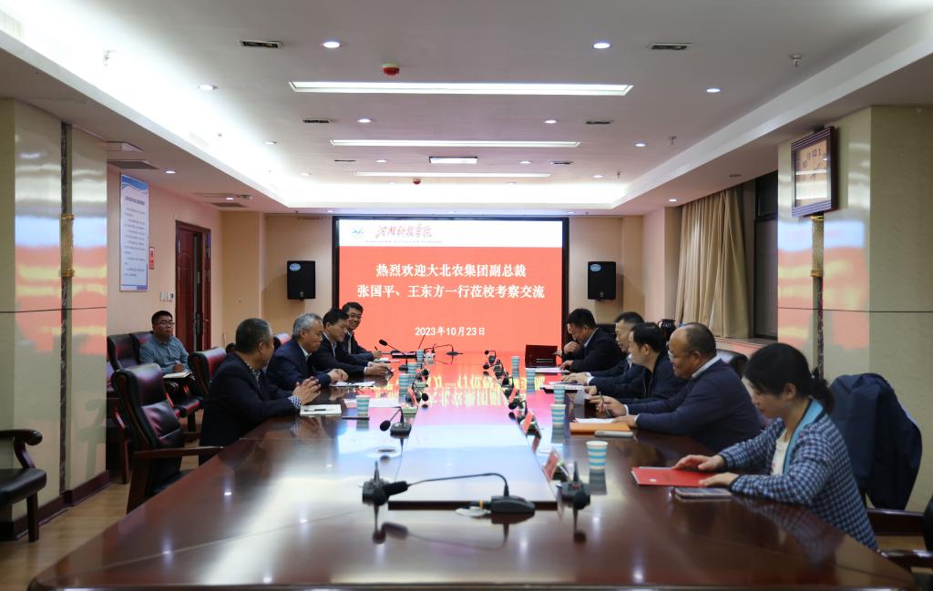 10月23日,大北农集团副总裁张国平、王东方一行来校考察交流,交流座谈会在校行政楼901会议室举行。校党委书记宋亚伟,校党委副书记、工会主席姚刚出席会议。学生处、成果转化与合作办公室相关负责人参加会议。会议由姚刚主持。
