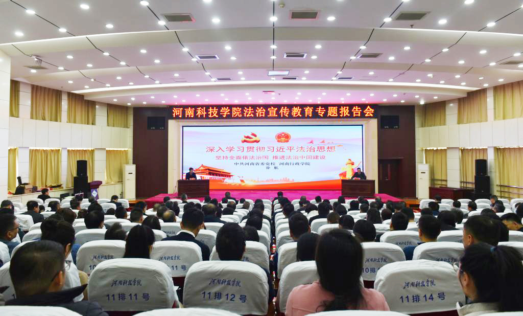 为深入学习贯彻习近平法治思想,按照省教育厅“百名法学家百场报告会”法治宣讲活动要求,11月21日下午,我校在办公楼308报告厅举行法治宣传教育专题报告会,中共河南省委党校法学教研部主任徐航博士作辅导报告。校领导、处级干部及各二级单位法治联络员参加会议。会议由校党委副书记、工会主席姚刚主持。