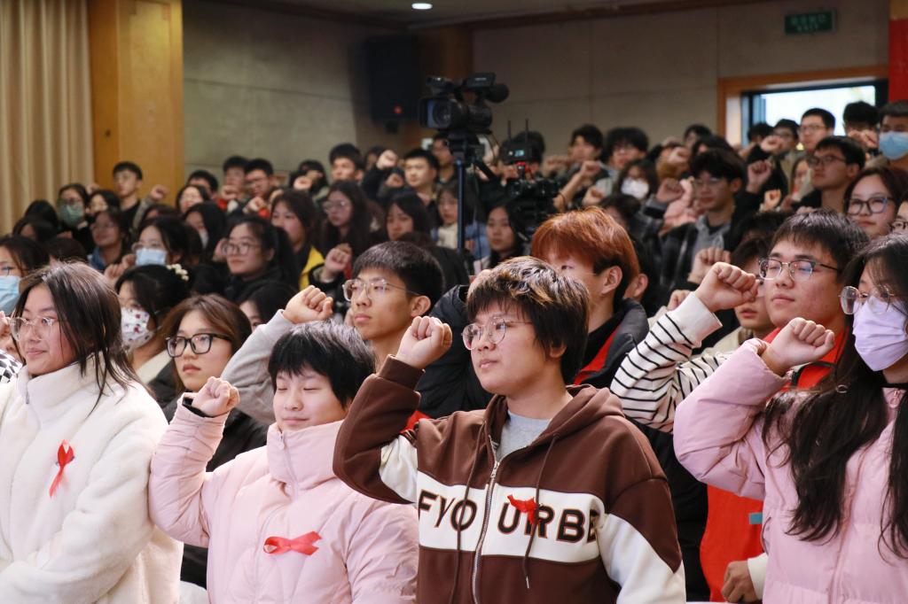 “百字宣言”将此次活动推向了高潮,同学们纷纷起立,宣誓将从自身做起,关注艾滋病,关爱艾滋病患者。