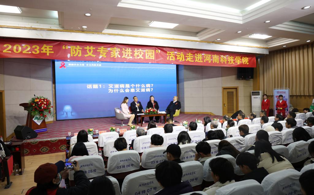 11月24日下午,我校开展了一场以“防艾专家进校园”为主题的艾滋病防治宣讲活动。此次活动由河南省卫生健康委员会、河南省疾病预防控制局、河南省教育厅主办,医药卫生报社、河南科技学院承办,河南省疾病预防控制中心、新乡市卫生健康委员会、新乡市疾病预防控制中心协办。活动旨在提高广大师生对艾滋病的认识,提升抗艾防艾意识,消除社会对艾滋病患者的歧视,共同营造一个关爱艾滋病患者的良好氛围。