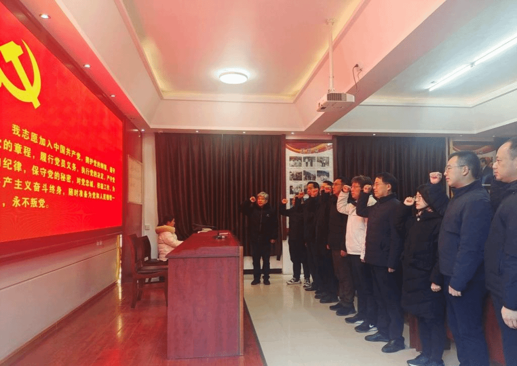 12月1日,在辉县回龙村,三个支部重温入党誓词。全体党员神情庄重地举起右手,握起拳头,庄严宣誓。宣誓仪式后,共同观看了回龙村党支部书记张荣锁带领乡亲们艰苦奋斗,自力更生,将一个贫穷落后的小山村建成全国“新农村建设示范村”“全国文明村”的纪实片。