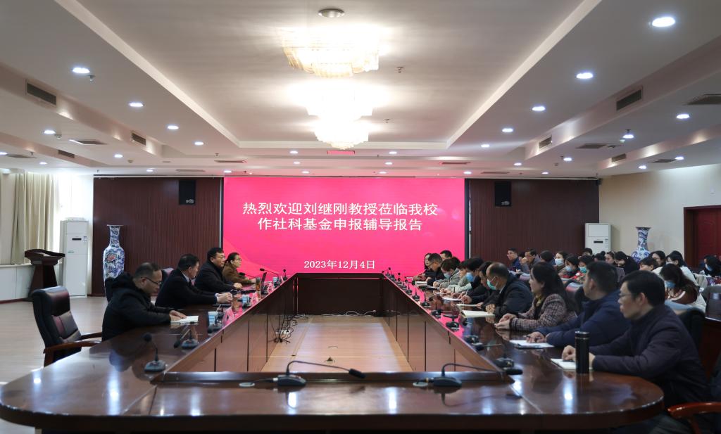 为提升我校国家社科基金项目申报质量,做好2024年度国家社科基金项目申报工作,12月4日下午,我校邀请河南中医药大学刘继刚教授在办公楼206会议室作了主题为“社科基金项目申报注意事项与案例分析”的辅导报告。我校9个文科学院的院长、副院长、科研秘书及基金申报老师等近百人参加本次会议。会议由校党委副书记、工会主席姚刚主持。