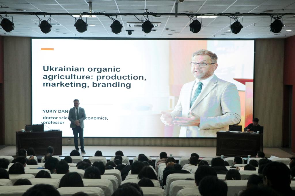 在办公楼206会议室。拉迪卡一行与苏梅国际学院的师生进行见面会。拉迪卡向学院师生们表达了亲切的问候,并面对面与学生们互动交流,为学生们成长成才提供宝贵的经验和启发。随后,在图书馆一楼学术报告厅,拉迪卡和尤里丹科校长结合自身专业领域的教育教学实践,面向苏梅国际学院师生分别作了题为《Dairy Cattle Breeding》《Ukrainian organic agriculture:production,marketing, branding》的学术报告,汇报了该领域的最新研究成果及应用。