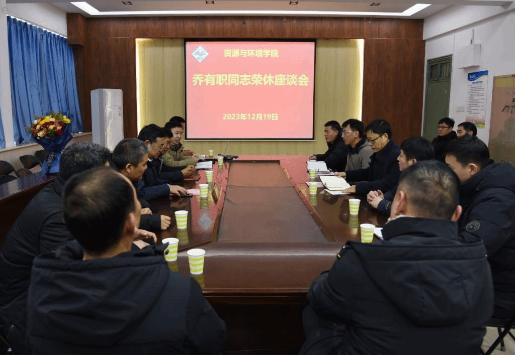 12月19日,资源与环境学院在实验楼E307会议室举行乔有职同志荣休座谈会。校纪委书记、监察专员贺杰出席座谈会,后勤服务中心、音乐与舞蹈学院、服装学院、资源与环境学院等单位相关同志及教师代表20余人参加荣休座谈会。荣休仪式由资源与环境学院负责人主持。
