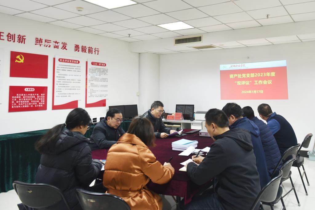 1月17日,资产处党支部在办公楼705室召开2023年度党支部“双评议”工作会议,副校长刘全永参加会议。会议由资产处负责人主持。