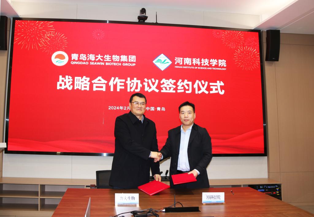 2月27日,我校与青岛海大生物集团股份有限公司战略合作框架协议签约仪式在青岛举行。青岛海大生物集团股份有限公司董事长单俊伟、副总经理宋海妹、人力资源总监战海燕、总经理办公室主任马栋、国际业务部经理王芸、动物营养部业务经理王艺超,我校副校长丁轲,国际合作与交流处、成果转化与合作办公室负责人及百泉现代农业研究院相关人员等出席了签约仪式。