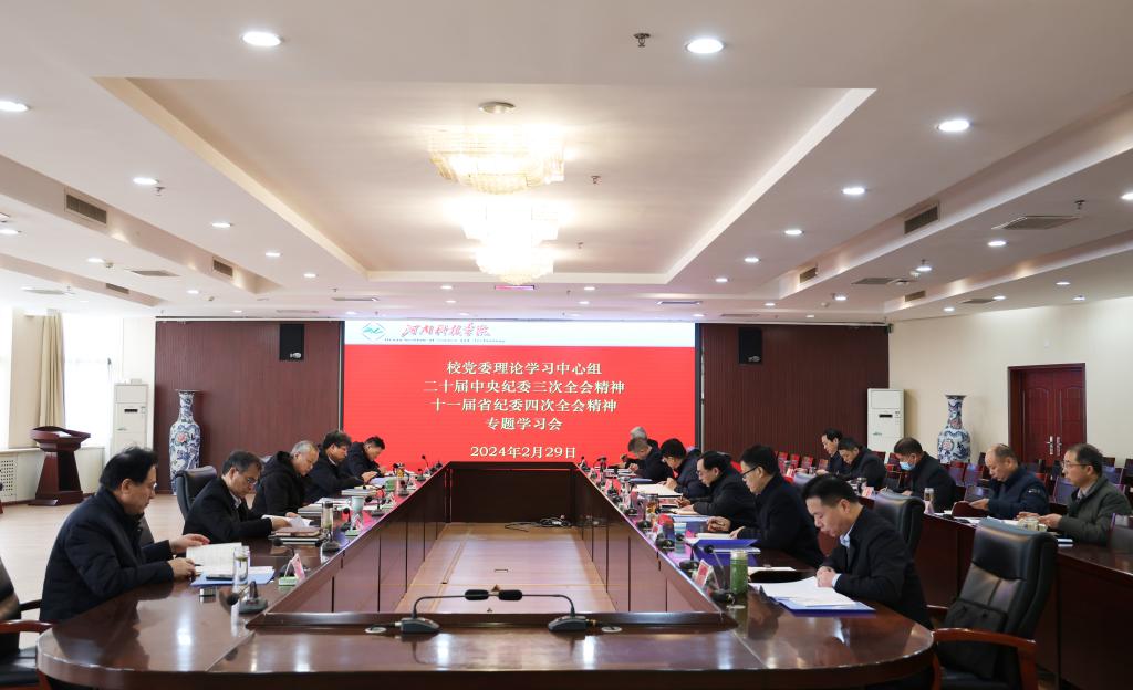 2月29日上午,校党委理论学习中心组在办公楼206会议室举行“二十届中央纪委三次全会精神、十一届省纪委四次全会精神”专题学习会。会议由校党委书记宋亚伟主持。
