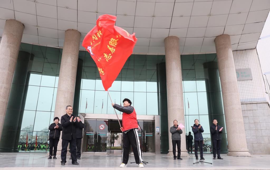 校党委副书记王庆兵为志愿服务团队授旗