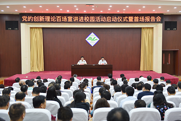 6月7日,我校党的创新理论百场宣讲进校园活动启动仪式暨首场报告会在行政楼三楼多功能报告厅举行。校党委书记周志远以《站位新时代 实现新发展》为题作首场报告。在校校领导、全体处级干部、辅导员、马克思主义教育学院教师代表、学生代表等300余人聆听了报告。