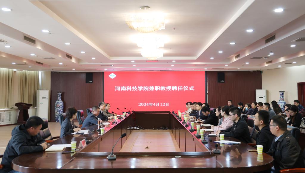 4月12日上午,我校在办公楼206会议室举行河南科技学院兼职教授聘任仪式。副校长胡铁柱出席仪式,聘任仪式由食品学院负责人主持。人事处、食品学院相关领导和师生代表40余人参加了聘任仪式。
