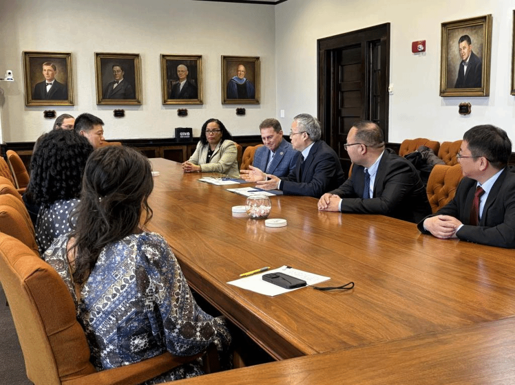 4月9日,宋亚伟一行拜访了佐治亚西南州立大学原教务长Ms. Lynda Lee Purvis女士,与校长Dr. Neal Weaver、现任教务长Dr. Jill Drake,以及教师代表们进行了友好座谈。