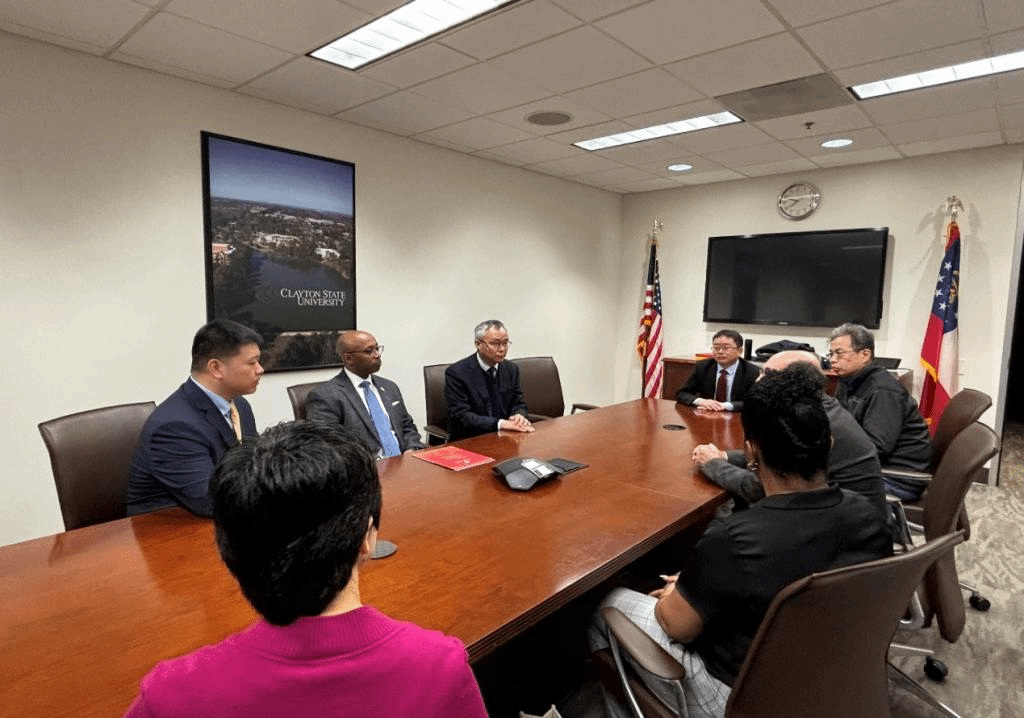 4月10日,应美国克莱顿州立大学校长Dr. Georj Lewis盛情邀约,宋亚伟一行访问了克莱顿州立大学,双方就合作办学、攻读硕士、人才交流、科研合作达成意向,对方计划选派二十余名学生和多名教师参加“汉语桥-豫见河南”夏令营活动,进一步深化两校的友好合作。