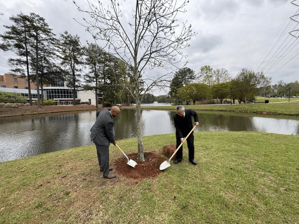 与克莱顿州立大学校长种下代表友谊的“常青树”