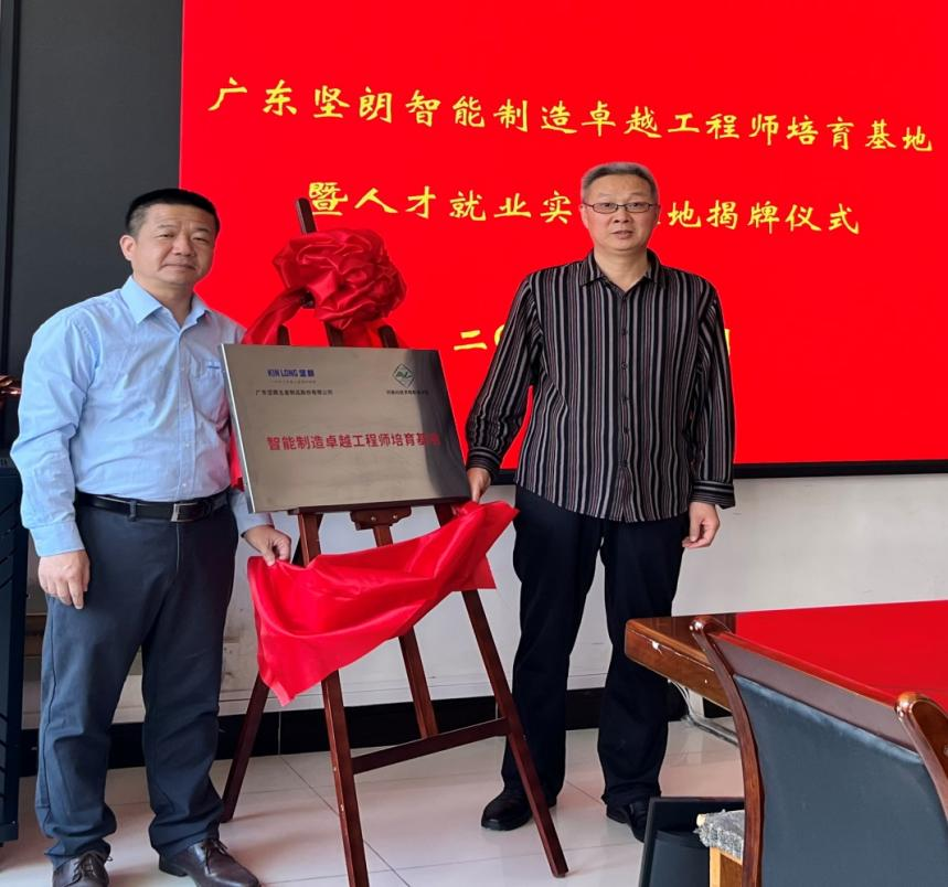 5月7日上午,广东坚朗五金制品有限公司智能制造卓越工程师培育基地暨人才就业实习基地揭牌仪式在我校机电学院4304会议室举行。新乡市政协副主席梁常运,副校长马金友,广东坚朗五金制品有限公司人资副总监顾翀、招聘副总监卢业政、校企培训主管邓芳坤和校企开发主管刘志豪,机电学院党政班子和教师代表参加仪式。揭牌仪式由机电学院负责人主持。