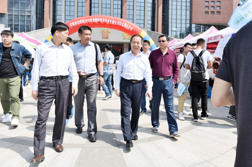 副校长冯启高、苗双虎在招生就业处、动物科技学院等相关单位负责人的陪同下亲临现场指导工作,并与参会企业和学生进行了深入交流。在交流中,很多公司表示在多次与学院开展合作过程中,对学校毕业生非常满意,他们将继续保持合作关系,吸纳更多优秀毕业生,为其提供更多更大的发展空间。