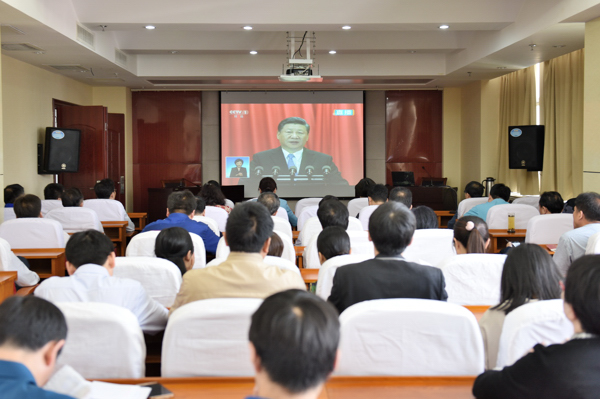 全体校领导在办公楼901会议室集中收看了纪念大会直播;各基层党委、党总支组织本单位师生一起观看了纪念大会盛况,认真聆听了习近平总书记的报告。在观看现场,响起一次又一次热烈的掌声。