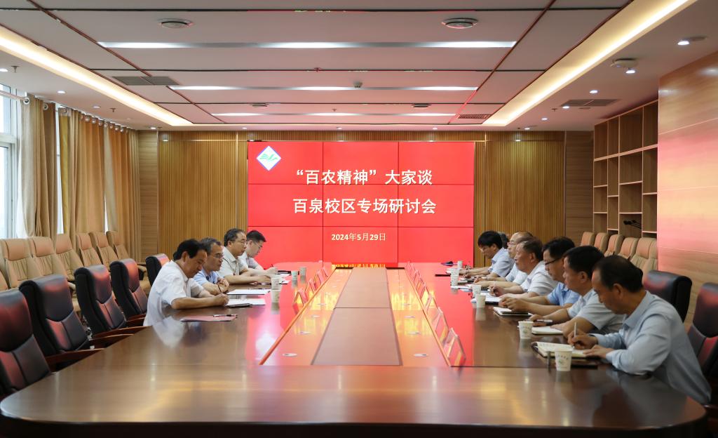 随后,王庆兵主持召开座谈会,围绕“百农精神”主题进行深入座谈交流,党委宣传部、党委统战部、高等职业技术学院等单位负责同志作交流发言。