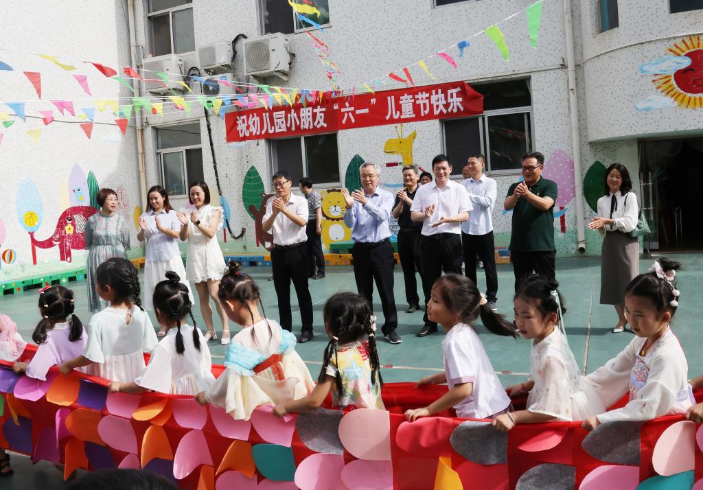 宋亚伟代表校党委、校行政祝孩子们节日快乐,希望孩子们好好学习、健康快乐地成长,并向辛勤耕耘的教师们致以诚挚的问候,感谢他们用心栽培、细心呵护祖国的花朵,为学校教职工解决后顾之忧。