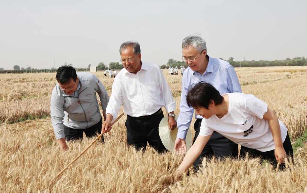 在2024年全国科技活动周期间,5月31日上午,校党委书记宋亚伟到我校国家现代农业科技示范展示基地(新乡县小麦千亩示范基地)和小麦遗传改良研究中心辉县中小营育种基地看望慰问奋战在“三夏”麦收一线的广大师生。党委办公室、农学院、杂交小麦工程技术研究中心等单位负责人陪同慰问。
