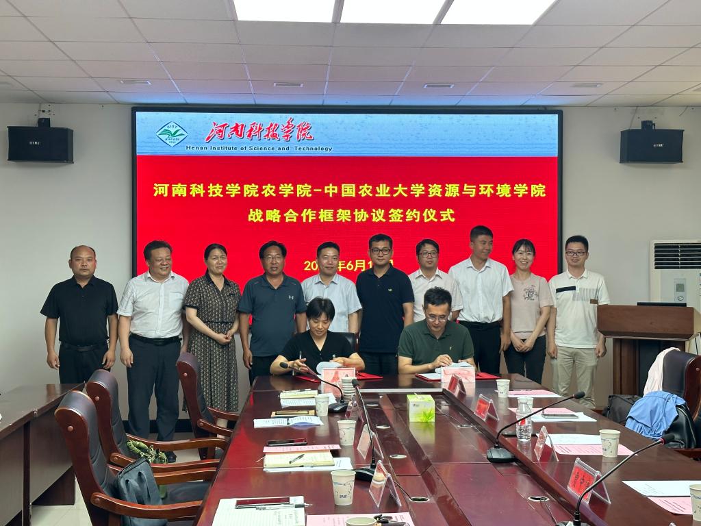 6月18日,我校农学院与中国农业大学资源与环境学院战略合作框架协议签约仪式在农学院708会议室举行。中国农业大学科学技术发展研究院常务副院长(原中国农业大学资源与环境学院院长)崔振岭教授与河南科技学院副校长丁轲出席签约仪式,成果转化与合作办公室负责人、农学院党政负责人参加签约仪式。