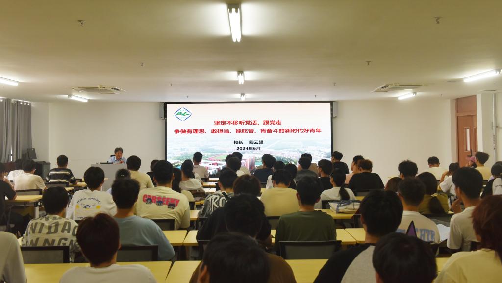 6月19日下午,校长阚云超在弘德楼B310教室为人工智能学院2023级学生120余名学生讲授专题思政课。