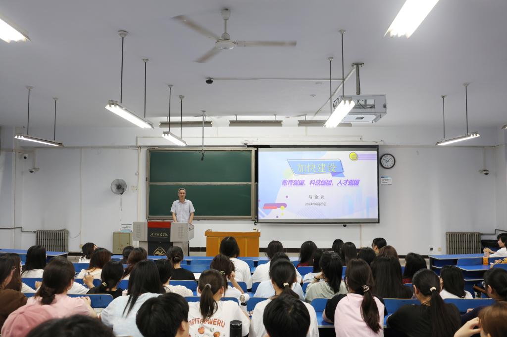 马金友以《加快建设教育强国、科技强国、人才强国》为题,分别从着眼长远发展的重大抉择、铸就强国建设的坚实基础、加快强国建设的战略部署、充分发挥高校的重要作用四个维度,深入论证了教育强国、科技强国、人才强国三者间的辩证关系,深刻阐释了我国在教育、科技、人才方面取得的历史性成就和当前存在的问题,详细解读了我国在应对当前问题时加快强国建设的战略部署,进一步强调了高校在加快建设教育强国、科技强国、人才强国中的重要作用。