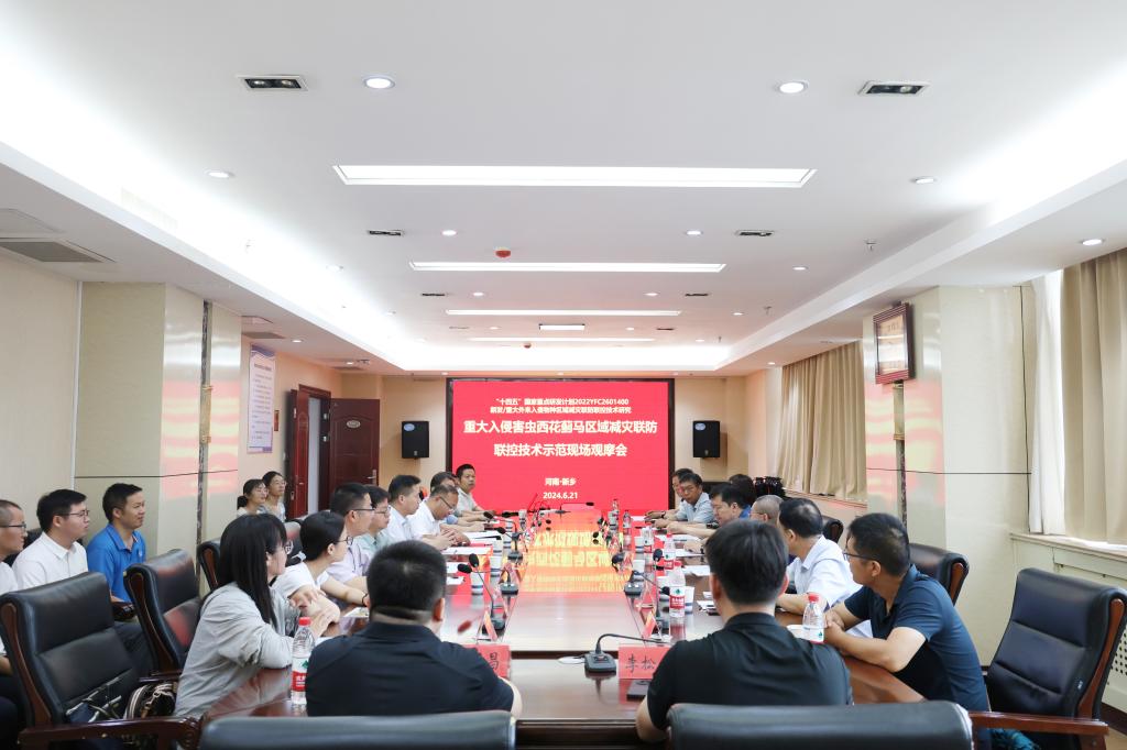 6月20-21日,由我校王刘豪主持的国家重点研发计划项目子课题“重大入侵害虫西花蓟马区域减灾联防联控技术示范”现场观摩会在新乡召开。会议邀请了浙江大学王晓伟,华中农业大学华红霞、马伟华,河南省植保植检站李好海,新乡市植保植检站张大明,新乡市农业科学院任广乾、任福森,项目首席科学家周忠实,我校副校长丁轲出席。科技处负责人、资源与环境学院负责人及课题组成员参加观摩会。